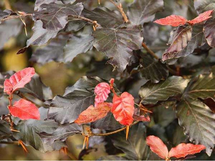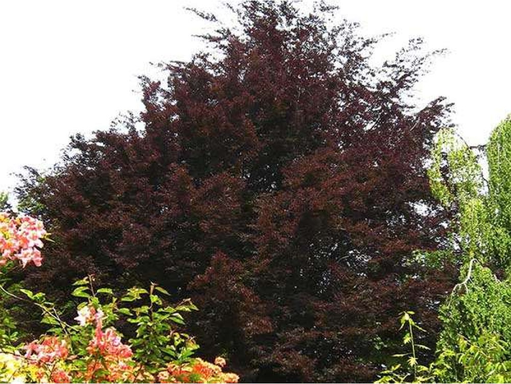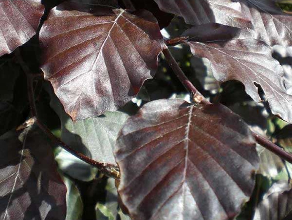 Popularna i bardzo cenna odmiana buka zwyczajnego o purpurowym zabarwieniu liści. Drzewo dorastające do 20 m wysokości, o pięknej, szerokiej i kulistej koronie. Największą ozdobą są jego błyszczące, ciemnoczerwone liście, które jesienią zmieniają kolor na pomarańczowo-żółty.