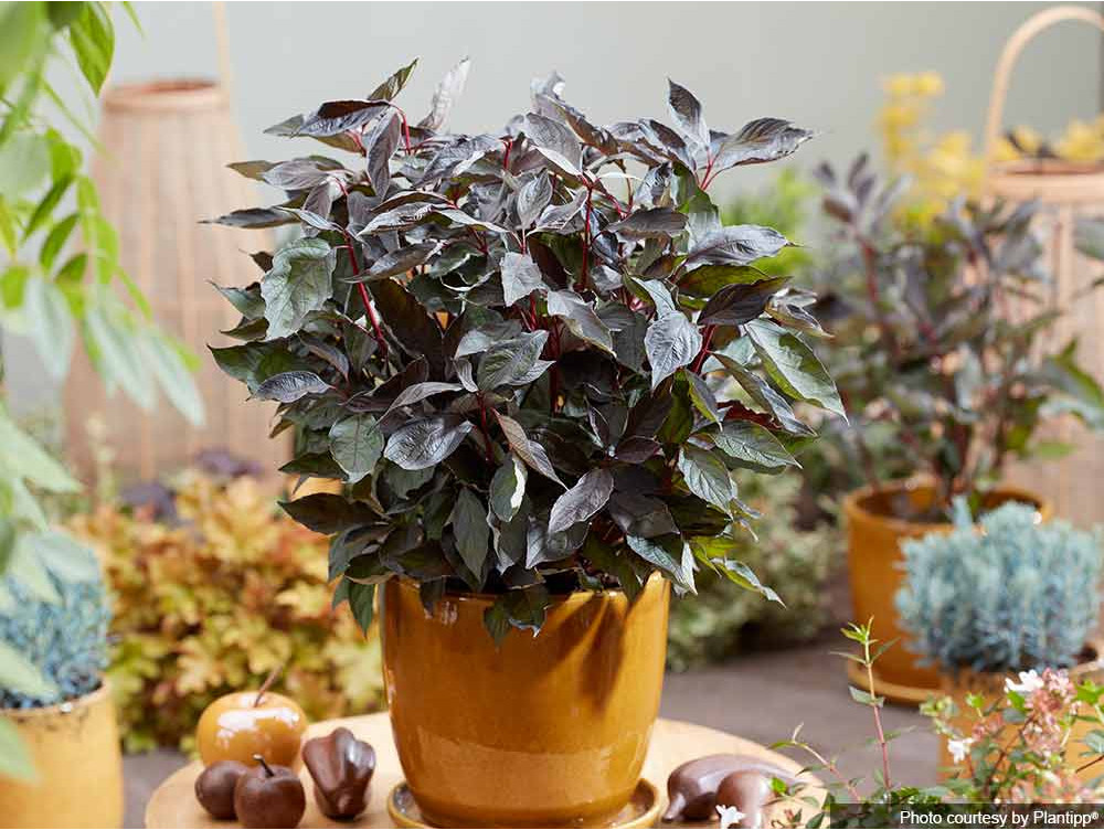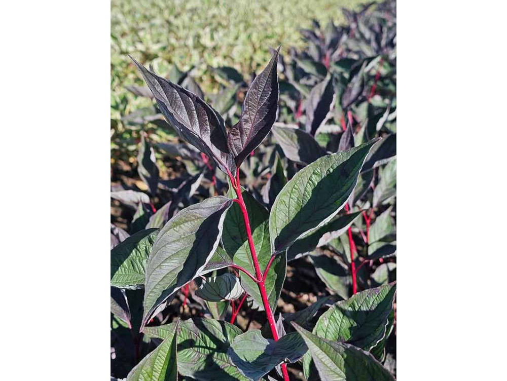 Nowa, efektowna odmiana derenia o bardzo ciemnym, jesiennym wybarwieniu liści. Rośnie jako wyprostowany krzew osiągając ok. 2 m wysokości. Młode, ciemnozielone liście jesienią wybarwiają się na niemal czarny kolor. Liście od spodu mają kolor jasnoszary i pięknie kontrastują z ich wierzchnią barwą. Po opadnięciu liści ukazują się nam w pełnej okazałości czerwone pędy, które są bardzo dekoracyjne, przez co krzew zdobi ogród również zimą. Odmiana polecana do ogrodów przydomowych, do sadzenia pojedynczo lub w grupach, do tworzenia kontrastowych kompozycji w założeniach naturalistycznych. Jest świetnym materiałem do tworzenia barwnych żywopłotów. Zimą czerwone pędy pięknie kontrastują na tle białego śniegu.