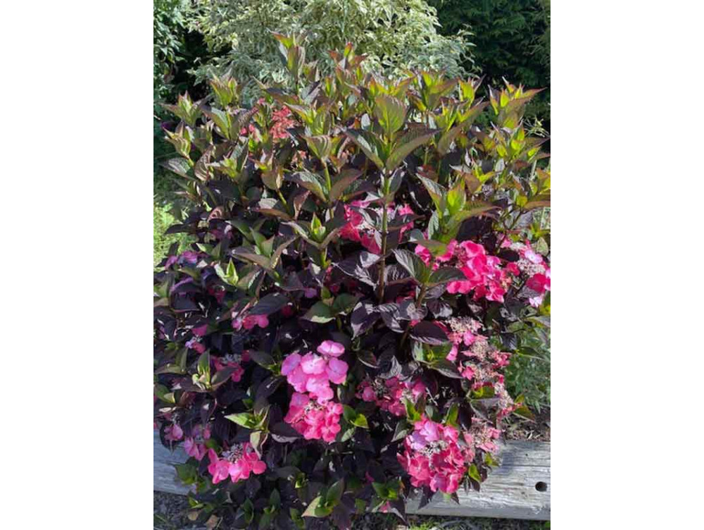 Pierwsza odmiana hortensji piłkowanej o bordowych, niemal czarnych liściach, która zachowuje taką kolorystykę przez cały sezon wegetacyjny. Została wyhodowana w 2014 roku we Francji przez Jean-Paul Davasse. Hortensja 'Daredevil' dorasta do ok. 0,5 - 0,8 m wysokości i ok. 1 - 1,2 m szerokości. Pędy sztywne, liście fioletowo-bordowe, jajowate, piłkowane. Jesienią wybarwiają się na intensywnie czerwono-bordowy kolor. W połowie czerwca pojawiają się pierwsze kwiatostany - duże i płaskie, złożone z kwiatów płodnych i płonnych, o barwie fioletowo-niebieskiej lub różowej w zależności od pH podłoża. Jeśli gleba jest kwaśna, kwiaty będą miały bardziej niebieski kolor. Jeśli odczyn podłoża zbliża się do obojętnego, kwiaty będą jasnoniebieskie, fioletowe, aż do różowego. Odpowiednie wartości pH dla niebieskich kwiatów to 4, a dla różowych 6,5. Może powtarzać kwitnienie jesienią jeśli po pierwszym kwitnieniu zetniemy przekwitnięte kwiatostany.