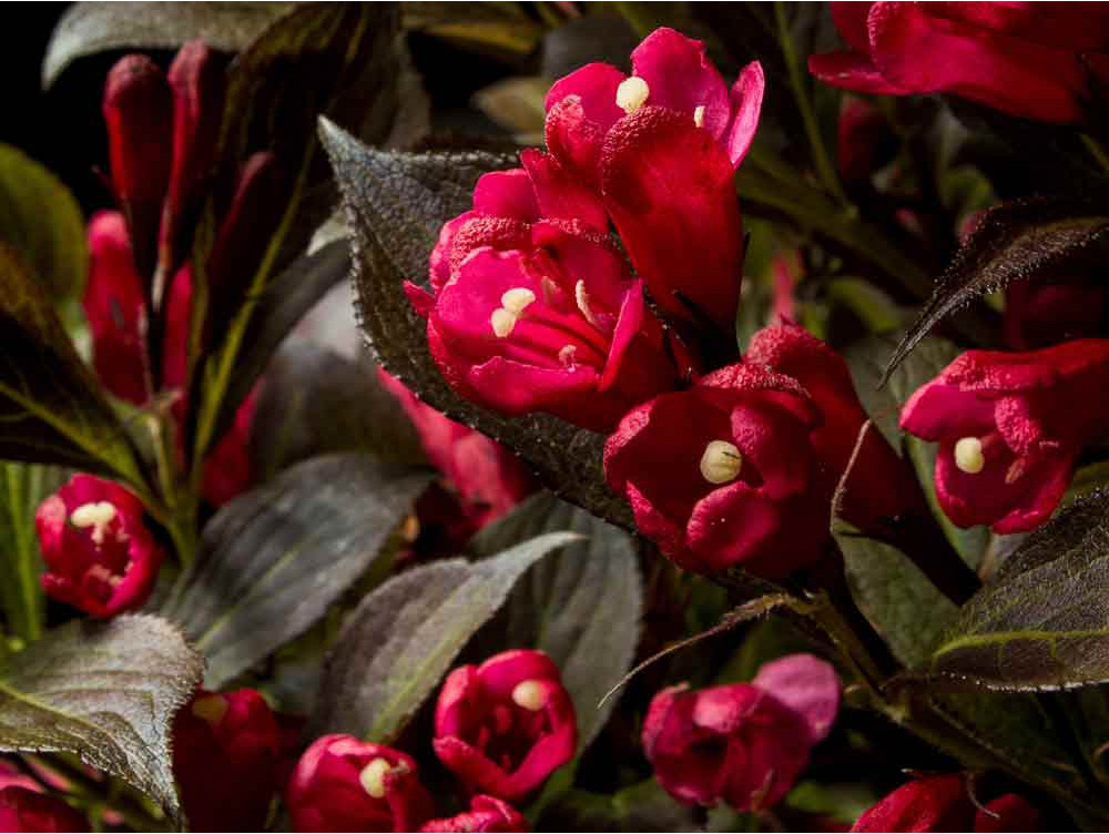 Jedna z najładniejszych i najciekawszych karłowych odmian krzewuszki o intensywnie czerwonych kwiatach i bordowych liściach. Weigela 'Electric Love' to krzew o kulistym pokroju dorastający do ok. 60 cm wysokości i podobnej szerokości. Kwiaty pojawiają się już w połowie maja i utrzymują się na roślinie dość długo, bo do połowy lata. Kwitnie bardzo obficie. Intensywnie czerwone kwiaty przepięknie kontrastują na tle mocno bordowych liści. Powtarza kwitnienie jesienią, jednak nie jest już ono tak obfite jak wiosną.