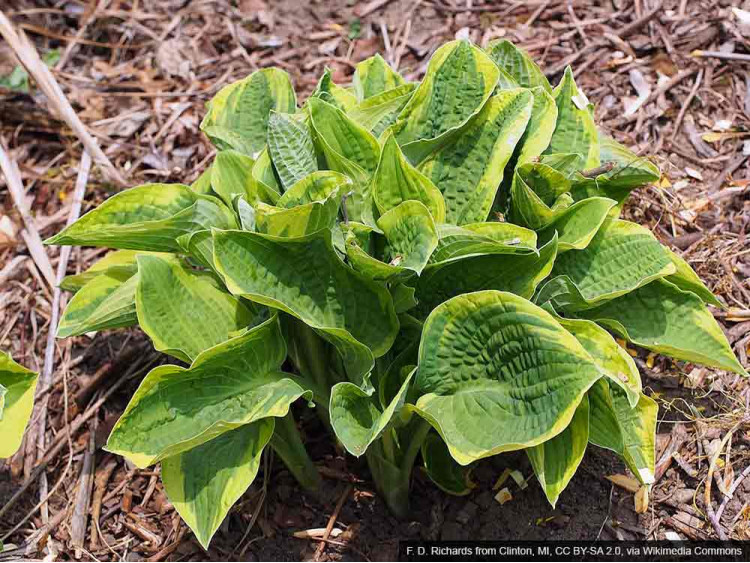 Wieloletnia bylina o ozdobnych liściach wyselekcjonowana w 1979. Jedna z piękniejszych odmian osiągająca ok. 45 cm wysokości oraz ok. 60-80 cm szerokości. Główną ozdobą rośliny są duże, zaokrąglone i karbowane zielone liście z szerokim, nieregularnym, kremowym brzegiem. W lipcu i sierpniu pojawiają się jasnofioletowe, dzwonkowate kwiaty skupione w kwiatostany na długich, prostych łodygach. Odmiana polecana do nasadzeń grupowych, jako roślina okrywowa, do obsadzania miejsc zacienionych (np. pod dużymi krzewami i drzewami), na rabaty, a także do tworzenia kompozycji naturalistycznych. Zaleca się sadzenie w grupie po 2-3 sadzonki. Gęstość sadzenia: 9 szt./m2.