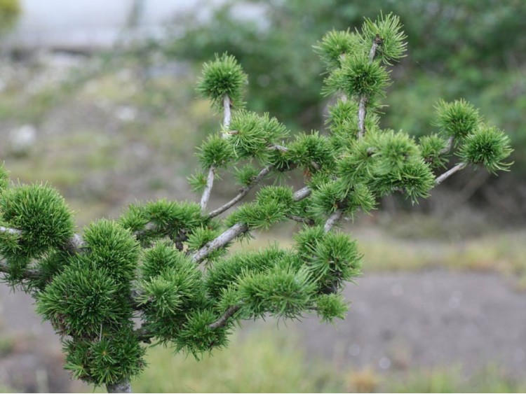 Bardzo ciekawa odmiana modrzewia europejskiego, wyselekcjonowana jako czarcia miotła, pochodząca z Czech. Rośnie bardzo powoli jako krzew o nieregularnym pokroju, przypominając trochę drzewko bonsai. Wypuszcza pędy w różnych kierunkach, nie wytwarza pędu przewodniego. Po wielu latach uprawy osiąga około 1 m średnicy. Igły skupione w gęste kępki, rozmieszczone wzdłuż pędów w nieregularnych odstępach, barwy ciemnozielonej i długości około 1-3 cm. Na zimę opadają. Dzięki takiemu ułożeniu igieł roślina wyróżnia się na tle innych modrzewi.