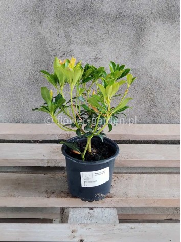 Zimozielony, obficie kwitnący krzew o nietuzinkowym wyglądzie. Dorasta do ok. 1 m wysokości. Młode liście jasnozielone, później ciemnozielone, błyszczące i lancetowate. Kwiaty białe z oliwkowożółtymi szypułkami, o kształcie małych dzwoneczków, zebrane w przewisające, wiechowate kwiatostany na szczytach pędów. Kwitnienie jest bardzo obfite, zaczyna się wcześnie, bo już pod koniec marca, a kończy w maju. Odmiana polecana do sadzenia pojedynczo, jak i w grupach, do małych ogrodów przydomowych, na wrzosowiska, a także do uprawy w donicy. Posadzony w towarzystwie azalii i różaneczników stanowi ciekawe, egzotyczne uzupełnienie.