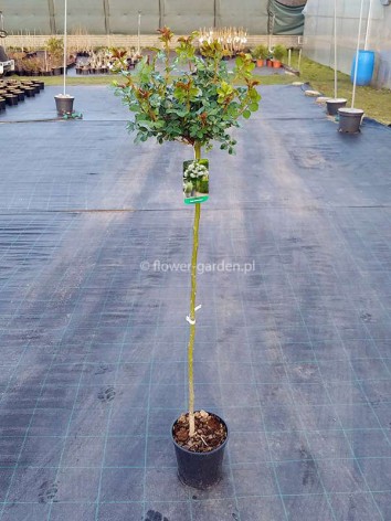 Pięknie kwitnąca róża w formie piennej, szczepiona na wysokości ok. 120 cm. Róże pienne to róże powstałe w wyniku okulizacji szlachetnej odmiany na tzw. podkładce (roślina, na której wykonuje się zabieg szczepienia). Korona zwarta, o kształcie kulistym. Liście ciemnozielone, błyszczące. Kwiaty pełne, barwy białej. Kwitnie obficie i długo, zaczynając w czerwcu i powtarzając kwitnienie aż do pierwszych mrozów.