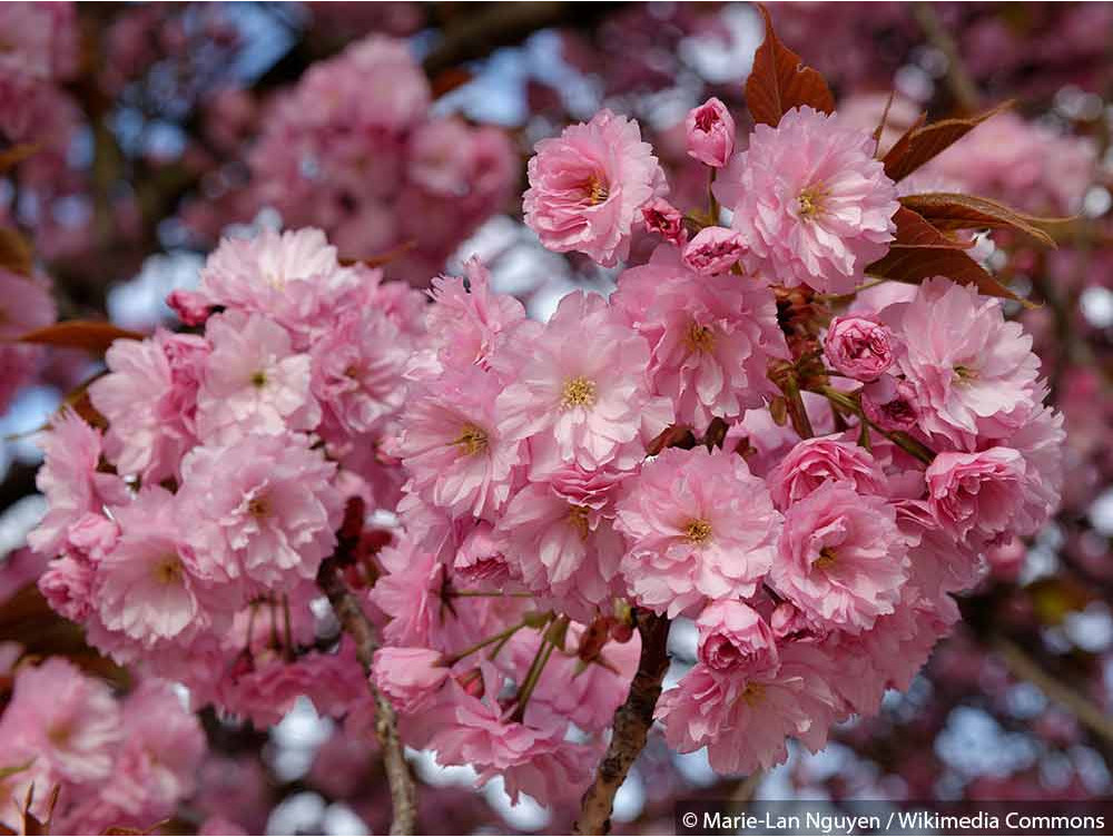 Jedna z najpopularniejszych i najbardziej widowiskowych odmian wiśni ozdobnej. Wiśnia 'Kanzan' to niskie drzewo ozdobne o zwartej, regularnej i charakterystycznej koronie w formie odwróconego stożka. Dorasta do 5-6 m wysokości i osiąga podobną szerokości. Liście zielone, błyszczące, jesienią przebarwiają się na żółto-pomarańczowo, na zimę opadają. Kwitnienie rozpoczyna się w maju. Wtedy wzdłuż gałęzi pojawiają się różowe, pełne, przyjemnie pachnące. Kwiaty są zebrane w pęczki po kilka sztuk i obficie pokrywają wszystkie pędy. Wiśnia ozdobna to drzewo, które idealnie sprawdzi się jako soliter w ogrodzie. Jest również wykorzystywana do tworzenia szpalerów, obsadzania alejek, i nasadzeniach miejskich.