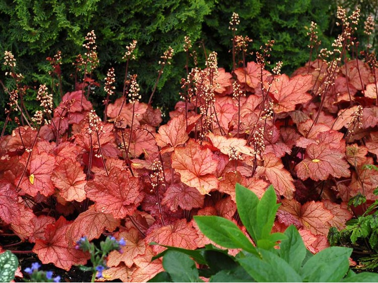 Wieloletnia bylina ozdobna o efektownych liściach. Dorasta do 30-40 cm wysokości. Główną ozdobą rośliny są duże, jaskrawe, czerwono-brzoskwiniowe liście, jesienią zmieniają barwę na bardziej fioletową. Od maja do czerwca pojawiają się białe kwiatostany na wysokich szypułkach. Roślina łatwa w uprawie odporna na mróz (strefa 4-9 wg. klasyfikacji USDA). Najlepiej wygląda sadzona w większych skupiskach na rabatach, skalniakach, obwódkach, wśród innych bylin. Nadaje się również do uprawy w donicy.