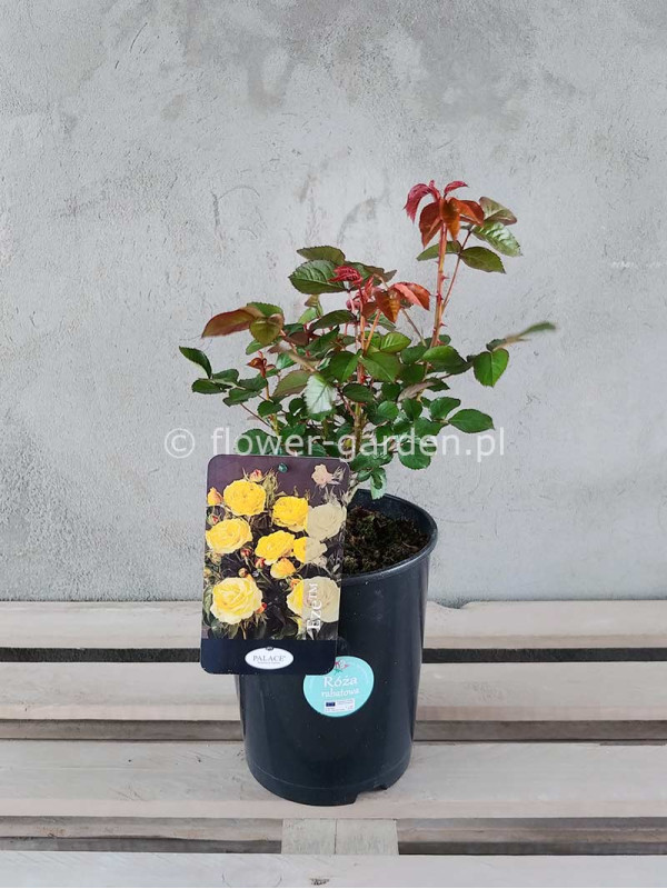 Róża rabatowa z serii Palace® – kolekcji niskich róż krzaczastych o kompaktowym pokroju duńskiej firmy Poulsen Roser A/S. Obficie kwitnąca róża rabatowa, o krzaczastym, wyprostowanym pokroju. Dorasta do około 60 cm wysokości. Liście ciemnozielone, błyszczące. Kwiaty pełne, barwy żółtej, o średnicy 5-10 cm, delikatnie pachnące. Kwitnie bardzo obficie i długo, zaczynając w czerwcu i powtarzając kwitnienie aż do pierwszych mrozów. Odmiana o uniwersalnym zastosowaniu, nadaje się również na kwiat cięty. Gęstość sadzenia w szpalerze: 2 szt./mb, gęstość sadzenia w grupie: 4 szt./m2.