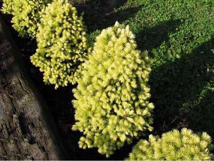 Wolno rosnący krzew o stożkowym pokroju, podobny do odmiany ‘Conica’. W wieku 10 lat osiąga około 0,8 m wysokości. Jego największą ozdobą jest złoty kolor igieł, pojawiający się wraz z wiosennym przyrostem. Wiosenna żółta barwa krzewu utrzymuje się aż do czerwca. Drugi, letni przyrost jest jasnozielony.
