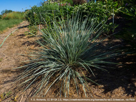 Wieloletnia trawa ozdobna pochodząca z Nowej Zelandii. Pokrój kępiasty, zwarty, dorasta do około 50 cm wysokości. Liście delikatnie przewieszające się, o ciekawej, intensywnej, pomarańczowo-rudej barwie, tworzące efekt "płomieni", poskręcane na końcu, atrakcyjne przez cały rok, zachowują swoją barwę przez całą zimę stanowiąc ładny kontrast na tle zimowego krajobrazu. Młode przyrosty są zielone, stopniowo przechodzą w pomarańczową barwę. Najlepiej trawa wygląda jesienią, wtedy jest najlepiej wybarwiona. Kwitnie latem.