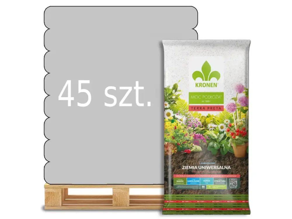 Ziemia uniwersalna bez torfu TERRA PRETA 50l Kronen - paleta 45 worków